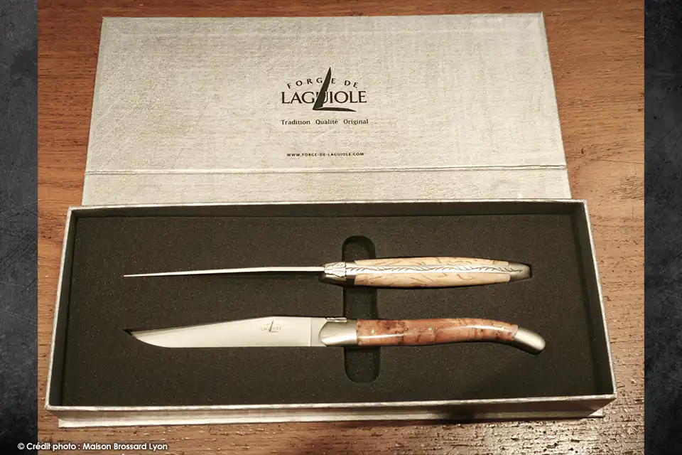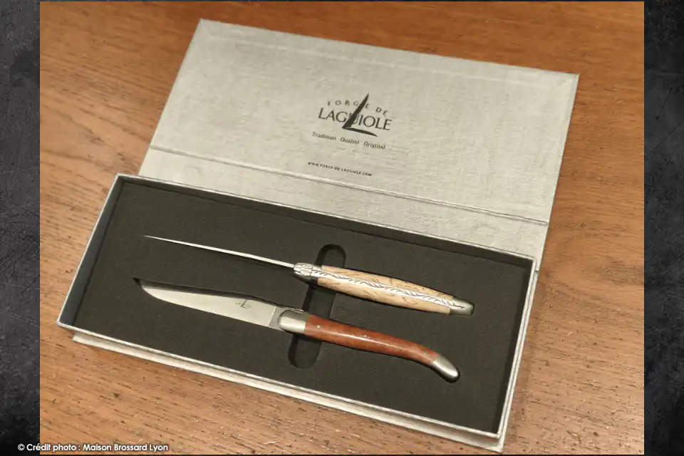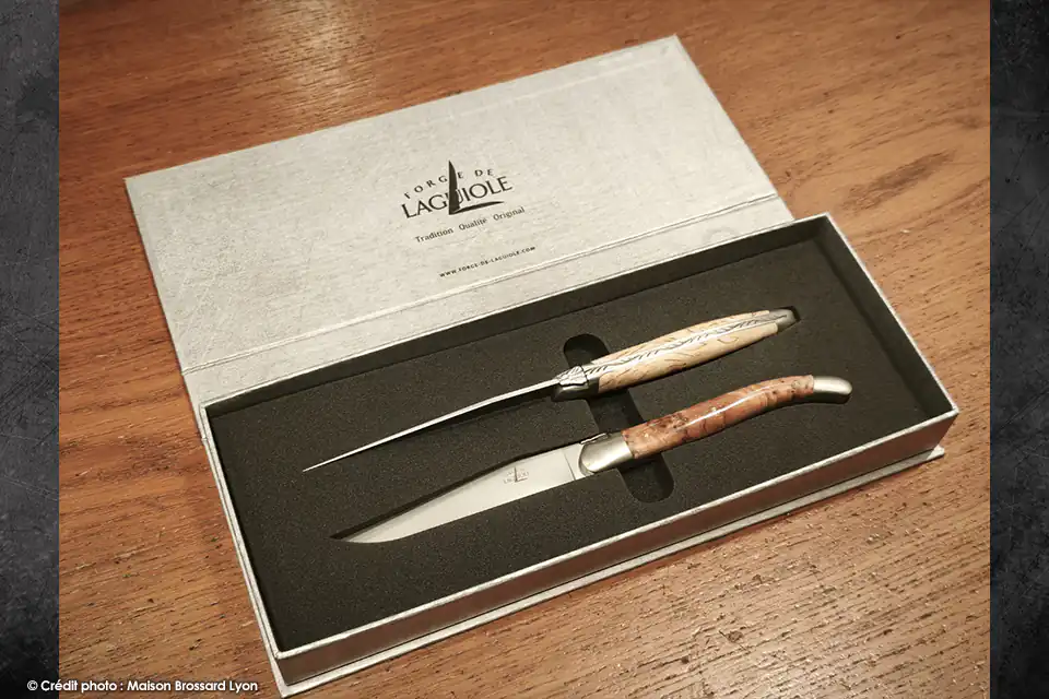 Coffret de 2 couteaux de table sélection de bois précieux – Forge de Laguiole
